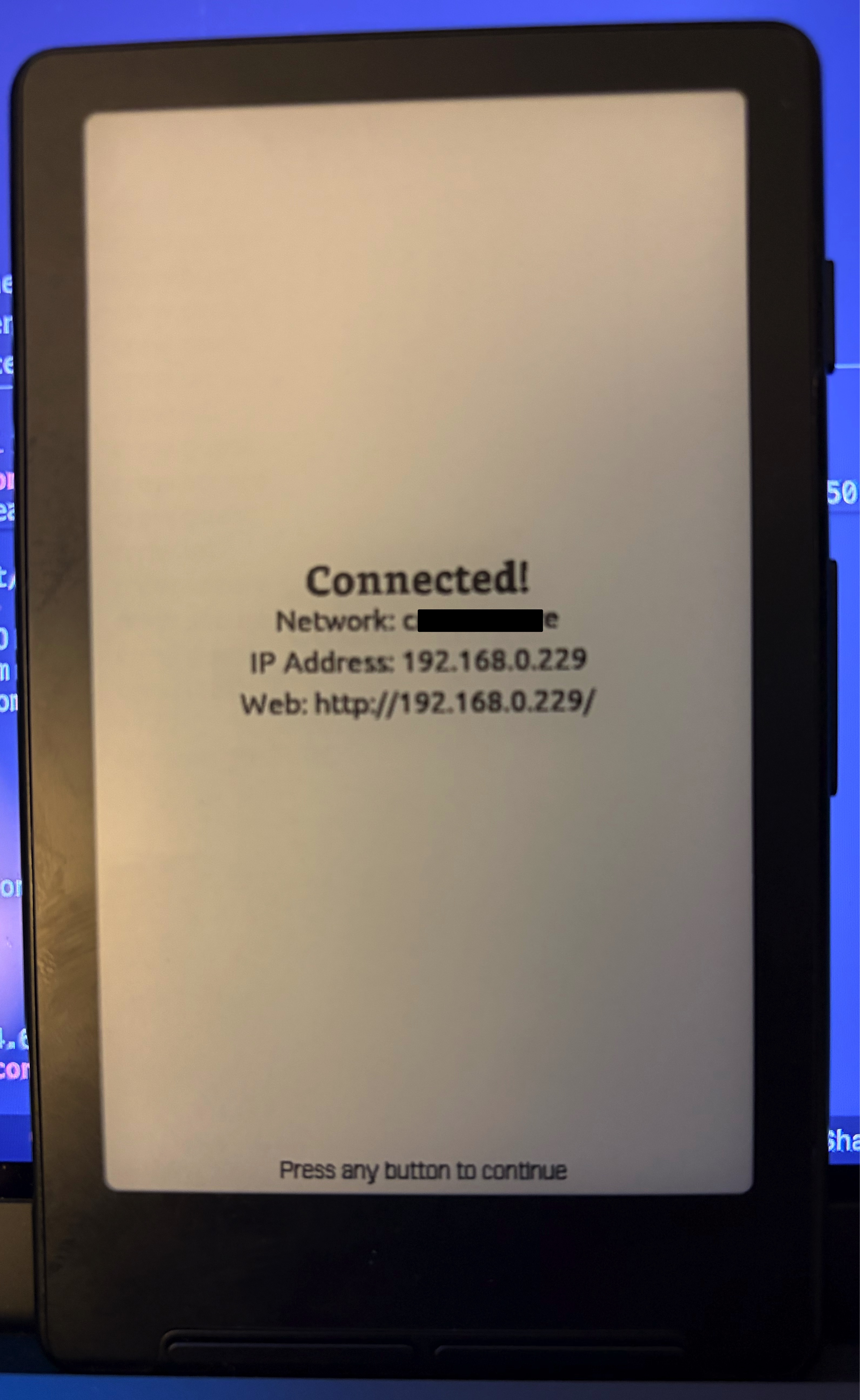 Important: Make note of the IP address - you'll need this to access the web interface from your computer or phone.